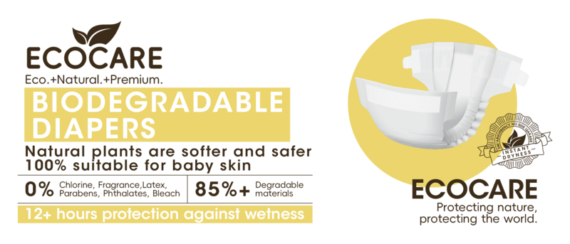 The widespread use of diapers has undoubtedly brought a heavy burden to the environment. However, EcoCare has always been committed to using "natural and environmentally friendly raw materials" to produce its full range of eco diapers. Natural biodegradable diapers can be completely degraded in the soil in just 3 months, contributing to the protection of the earth's environment. Friendly organic diapers are not only environmentally friendly, but also beneficial to the healthy growth of babies. Protecting the health of babies is also protecting the future of the earth.