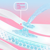The extra-long absorbent core of ECOSOFT sanitary pads pants style can move 360°, so you don't have to worry! And it absorbs quickly and feels dry to the touch, so you can use it with confidence during the day and at night.