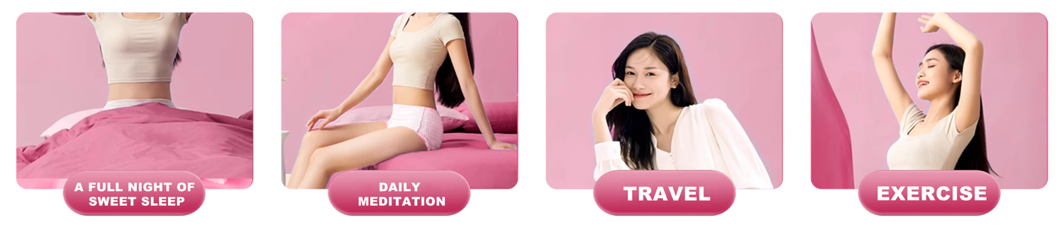 ECOSOFT is thin and seamless, fitting like a second skin. It won't squeeze your body or rub your thighs like other period panty pads. Once you put it on, you'll feel little discomfort and even very comfortable. It keeps you secure no matter how you toss and turn during the night.