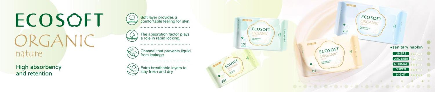In the field of feminine care, ECOSOFT has always adhered to the concept of "natural, healthy and comfortable" to create a new generation of plant-based sanitary napkin. We are well aware of the core needs of modern women for feminine pads products - not only safety and comfort, but also environmental sustainability. ECOSOFT sanitary pads combine innovative technology with natural materials to redefine the standard of period panty pad, making special days easy and worry-free.